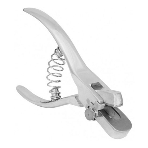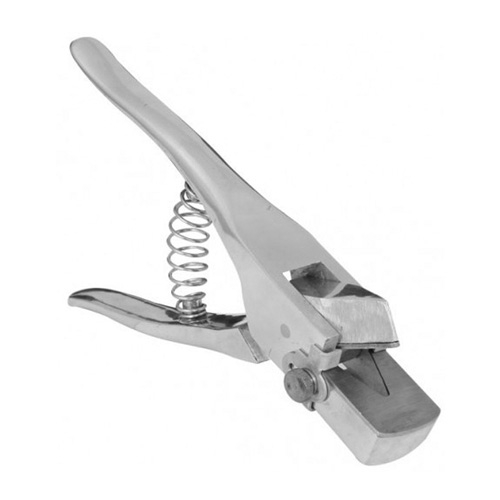 Flower Cut Ear Notcher. Made from Stainless steel it has slide spring-action handle. Cutting plates are carefully ground after being hardened and tempered for a clean cut notch of 1". (L 8")